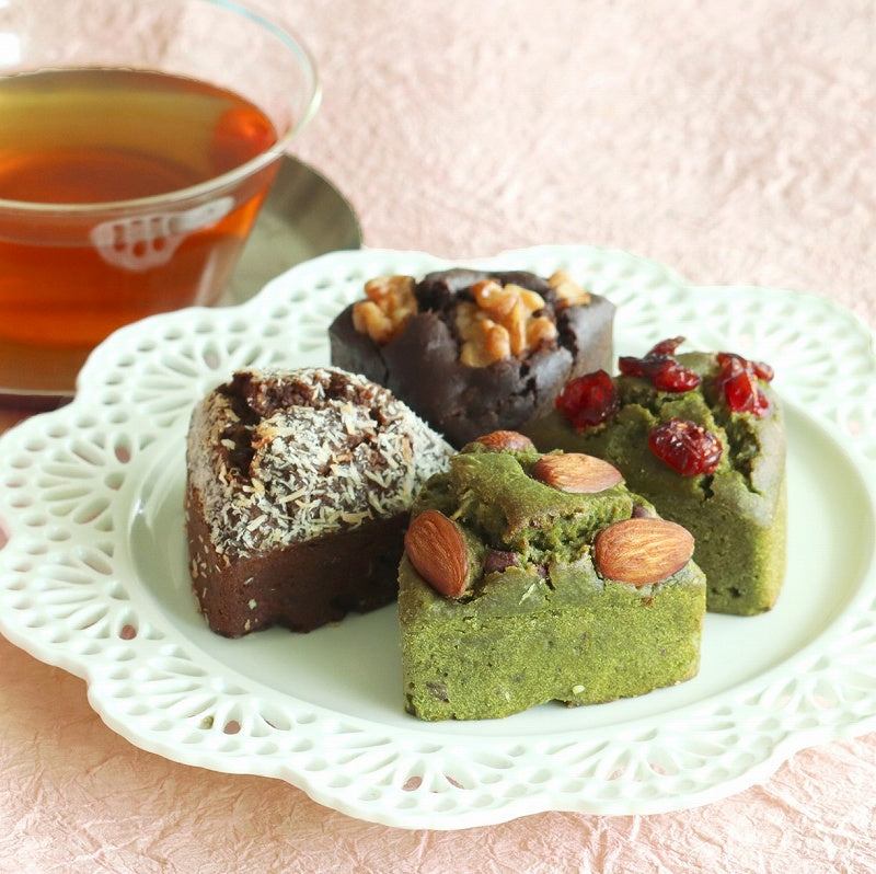 | 内容量 | 6個入り(抹茶クランベリー×2個、抹茶アーモンド×2個、ほうじ茶くるみ×1個、和紅茶ココナッツ×1個) |